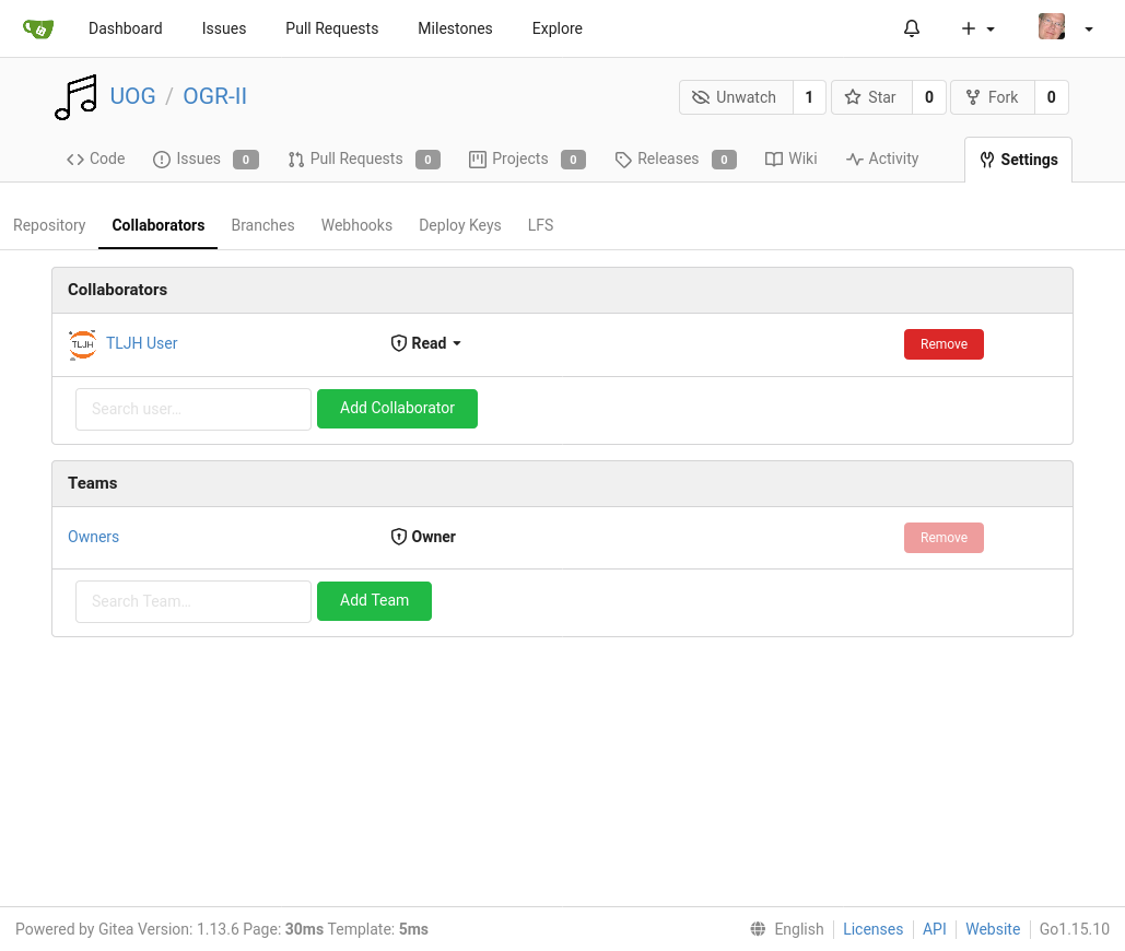 NB: the UOG organisation and data-science team have been created beforehand using the gitea webinterface.