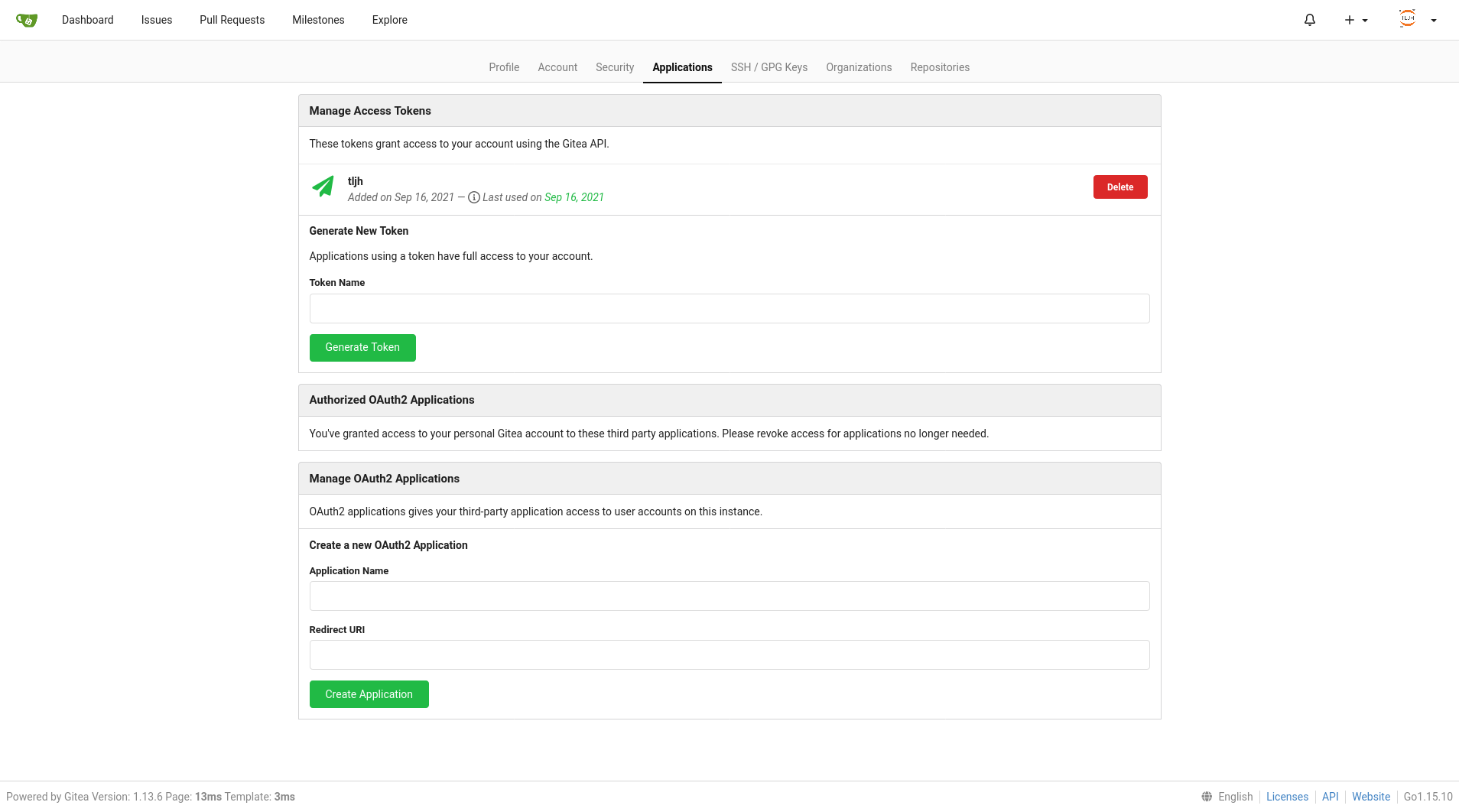An alternate way to grant/get access is by means of tokens that can be generated using the gitea webinterface. We'll employ this method below.